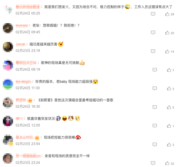 隨即,張學友做出攤手的手勢,并表示:“再來一次。對不起,我們再來一次好不好,我想應該是我們在彩排時的錄音放出來了。”然后他又詢問身后樂手:“Are you ready?(你們準備好了嗎?)好,來!”重新以飽滿的情緒完成了演唱。