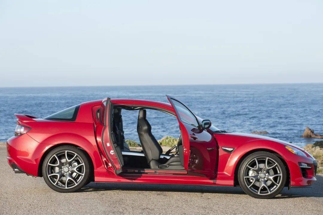 馬自達RX-8是馬自達品牌在21世紀初推出的標志性四座跑車,并作為RX-7精神繼任者,搭載了新一代自然吸氣轉子發動機(13B-MSP Renesis),并創新性地采用了對開式無框車門設計。RX-8主打“實用四座布局下的純粹駕駛樂趣”,核心定位是讓更多人體驗到轉子引擎的高轉魅力和馬自達“人馬一體”的操控哲學,目標用戶是熱愛駕駛、追求獨特機械美學與創新設計的年輕運動轎車愛好者。