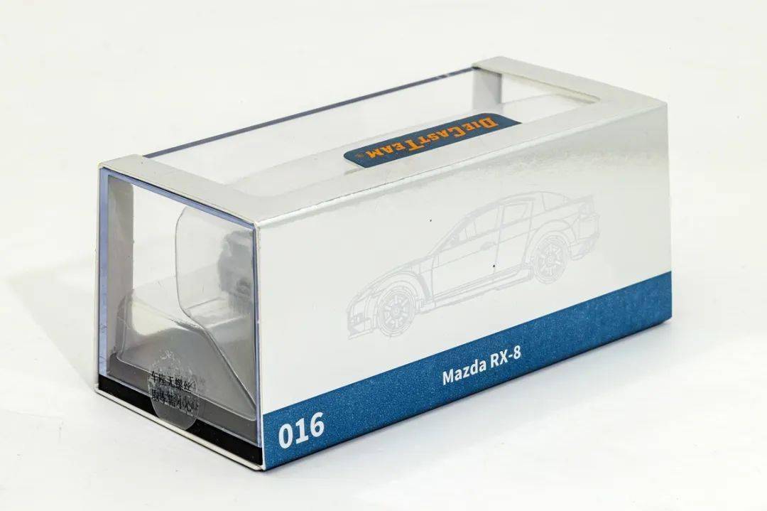 這次給大家介紹的馬自達RX-8模型來自于DCT這個品牌,也是我們熟悉的老朋友了,模型的比例為1/64,材質為合金,這批RX-8一共有珍珠白、深灰色、黃色和我們本次試玩的銀色版,模型官方價格49元(實際到手的價格會更低),本產品附送了透明展示盒,這次試玩馬自達RX-8 在整體上來說細節還算可以、漆面中規中矩,關鍵在于價格較低,性價比高,而且產品也有馬自達的授權。