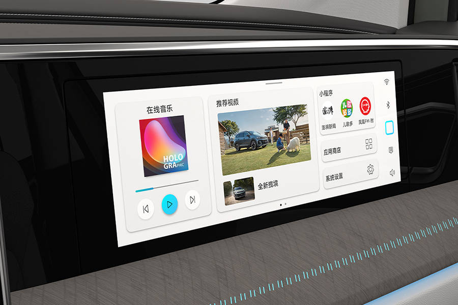 新車內飾采用環抱式設計,大眾家族最新的設計風格,主駕、中控、副駕三屏組成,并輔助抬頭顯示系統,懸浮式中控屏的尺寸更大,車機采用高通驍龍8155芯片,車機系統、導航、娛樂、語音全面升級。中控臺下方增加無線充電面板,改用懷擋。同時,新車采用6座/7座布局,后備廂空間350L。
