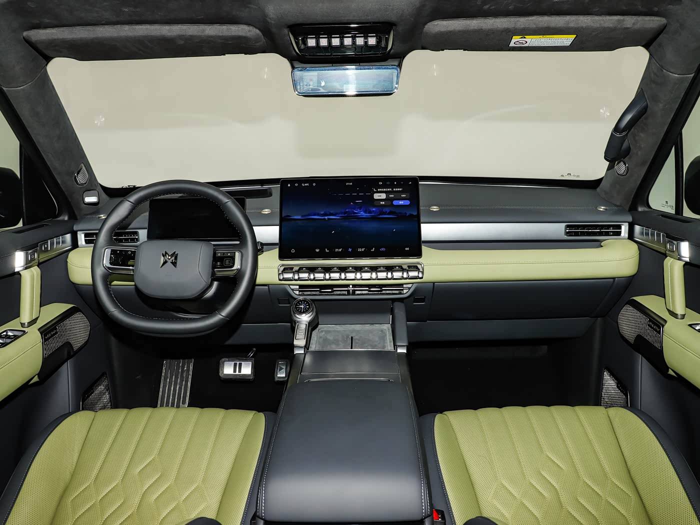 另外,猛士M817也采用了非承載式車身結構,并且具備31°接近角、31°離去角、20°縱向通過角和237mm最小離地間隙,最大涉水深度為820mm。雖然是一臺硬派SUV,但猛士M817將會搭載華為乾崑ADS 4智駕和鴻蒙座艙5以滿足用戶對智能化需求。