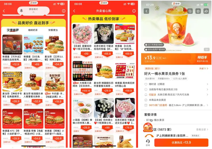 圖源:快手APP、美團小程序