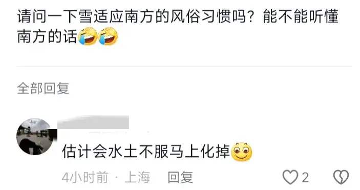 請問一下北方的雪適應南方的風俗習慣嗎?能不能聽懂北方的話?