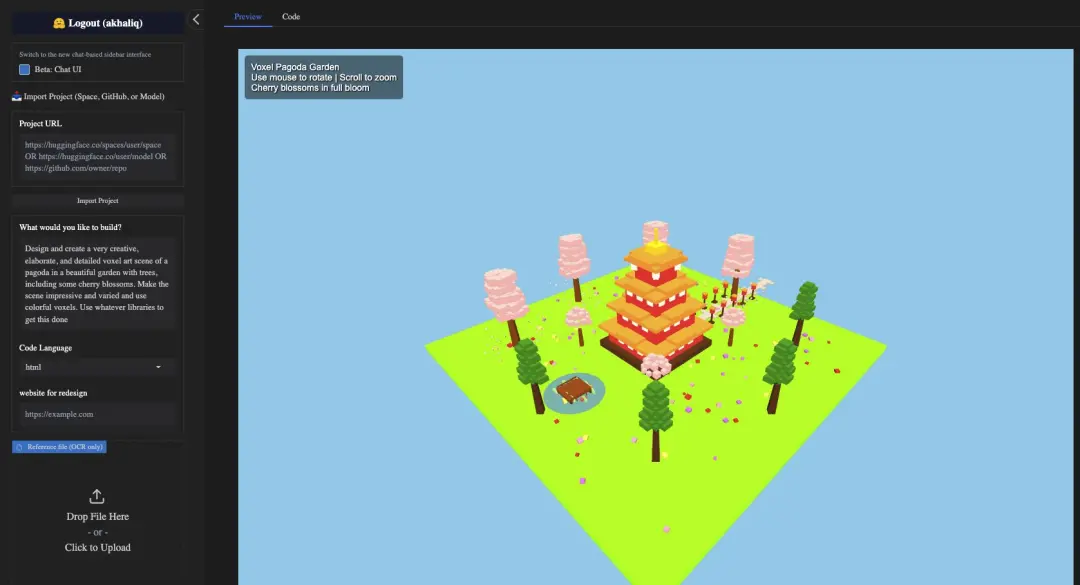 然后,據AK的描述,Qwen3-Max-Preview一次性就實現了如下的效果: