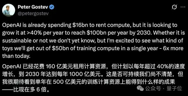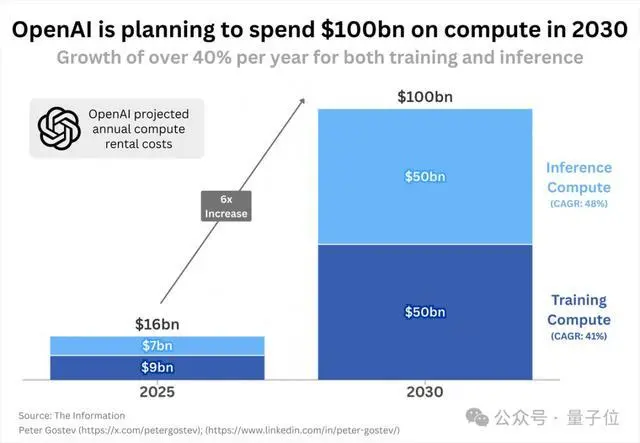 就從今年的數(shù)據(jù)來看,花的160億美元中,計算成本為90億元,推理成本70億美元,到了2030年,這兩項投入都將接近500億美元。