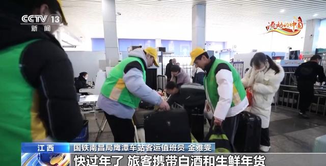 國鐵南昌局鷹潭車站客運值班員金雅雯:快過年了,旅客攜帶白酒和生鮮年貨回家過年的比較多,酒精濃度超過70%的酒類飲品屬于易燃易爆物品,它是禁止托運和隨身攜帶的;如果旅客想要攜帶白酒回家過年,白酒要密封包裝好、標識要清晰,白酒的度數也不能超過70度,累計不能超過3000毫升,像市場上常見的,一瓶500毫升的白酒,最多只能攜帶6瓶。活雞活鴨也是禁止攜帶上車的,雞、鴨、臘肉、海鮮等生鮮年貨,這樣密封包裝好的,也是可以攜帶上車的。