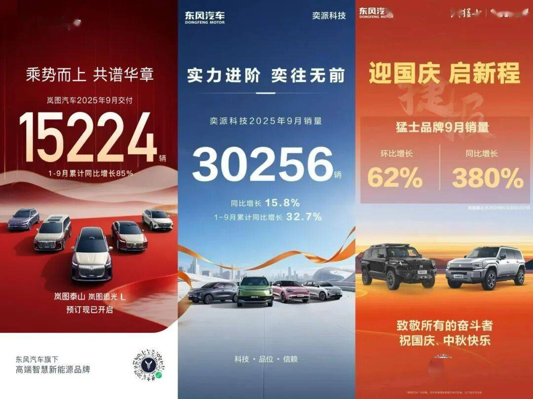 東風旗下的高端新能源品牌嵐圖9月交付15224輛;1-9月累計同比增長85%,接下來還有嵐圖泰山和嵐圖追光L兩款新品,前途一片大好。