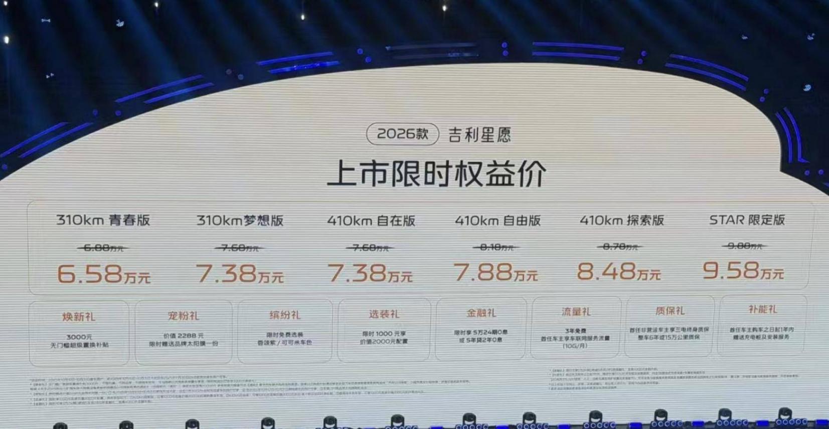 首先是價格層面,很有驚喜,老款指導價為6.88萬-9.79萬元,而26款直接將價格殺到限時6.58萬-9.58萬元。