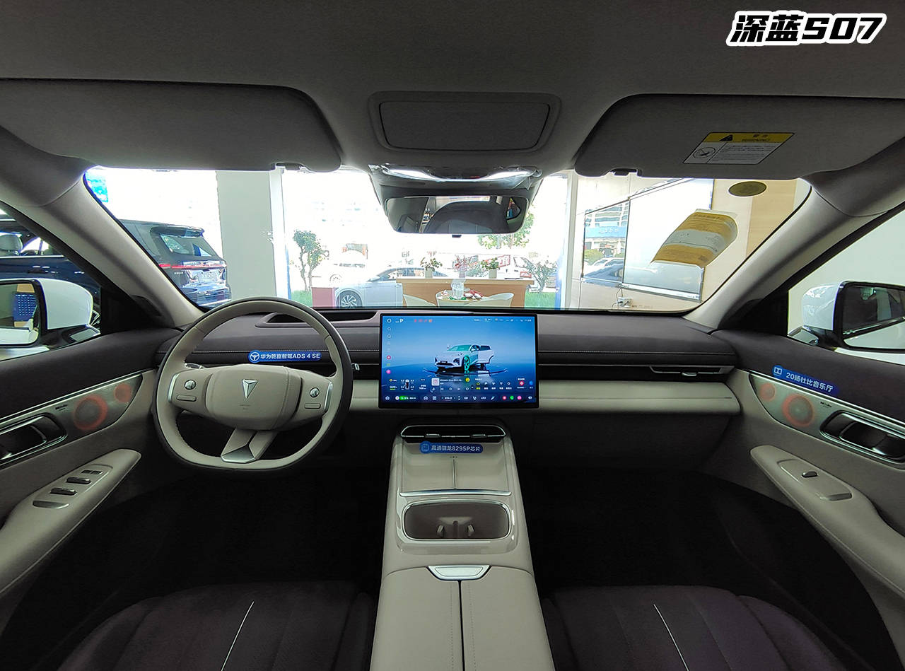 還有個音樂愛好者在意的東西——揚聲器,雖然坊間覺得音響是玄學,但揚聲器數量不夠的話,那也是白搭。深藍S07頂配給你整了20個揚聲器,且支持杜比全景聲,順帶給小白講一下什么是杜比全景聲,就是能讓聲音從頭頂或任何方向傳來,精準還原音效方位,配合聯動的星河律動氛圍燈,就像身臨其境百萬級豪車音樂廳一樣。海獅06這邊,頂配給了12個揚聲器,其實放在同級是正常操作,但深藍S07純屬不講武德。