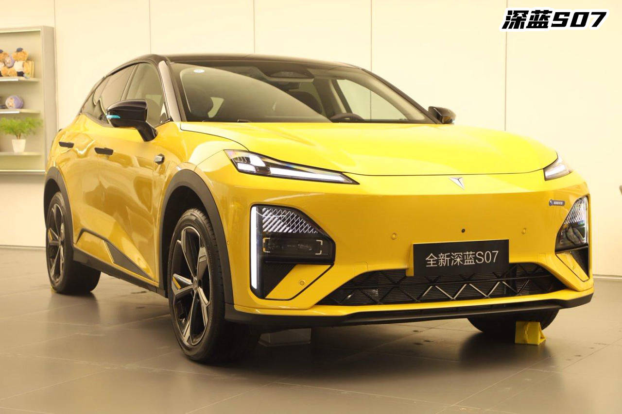 深藍S07剛出來那會,我的反應是驚為天人,車頭很凌厲,遮住Logo和蘭博基尼Urus擺一起,算是同一派的,新出的馳光黃車色和略帶鋒芒的月弦前臉造型搭配,時尚度簡直拉滿,而且給到了無框車門,年輕人對這玩意可上頭了,畢竟在他們眼里,無框車門≈跑車。
