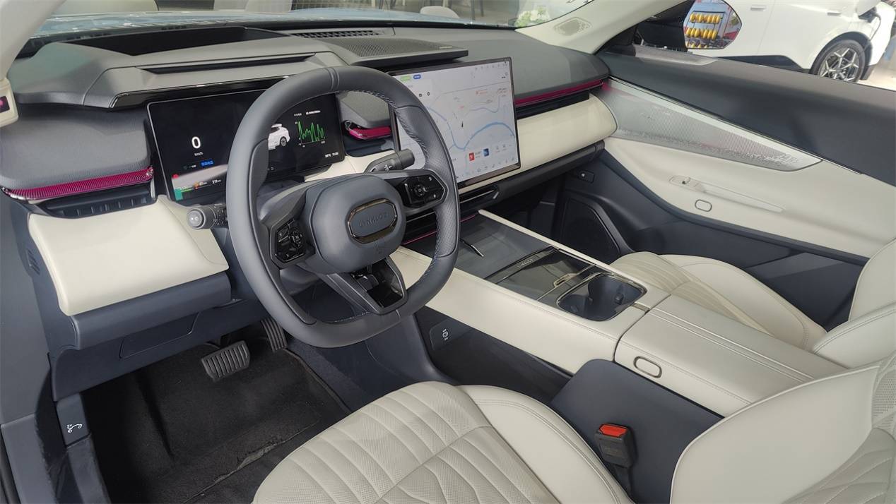 好在座艙的設(shè)計(jì)和顏色搭配水平依然在線。灰色的內(nèi)飾底色,搭配米白色的皮革包裹,還有透明的氛圍燈帶包圍,對(duì)于鍍鉻和亮面飾板的使用卻很克制,維持著一個(gè)近乎輕奢風(fēng)格的時(shí)尚品牌應(yīng)有的格調(diào),視覺(jué)效果上仍比同門的銀河高出一個(gè)檔次。方向盤維持了老款的樣式,兩側(cè)的四向搖桿造型很貼合手指,操作手感也不錯(cuò)。