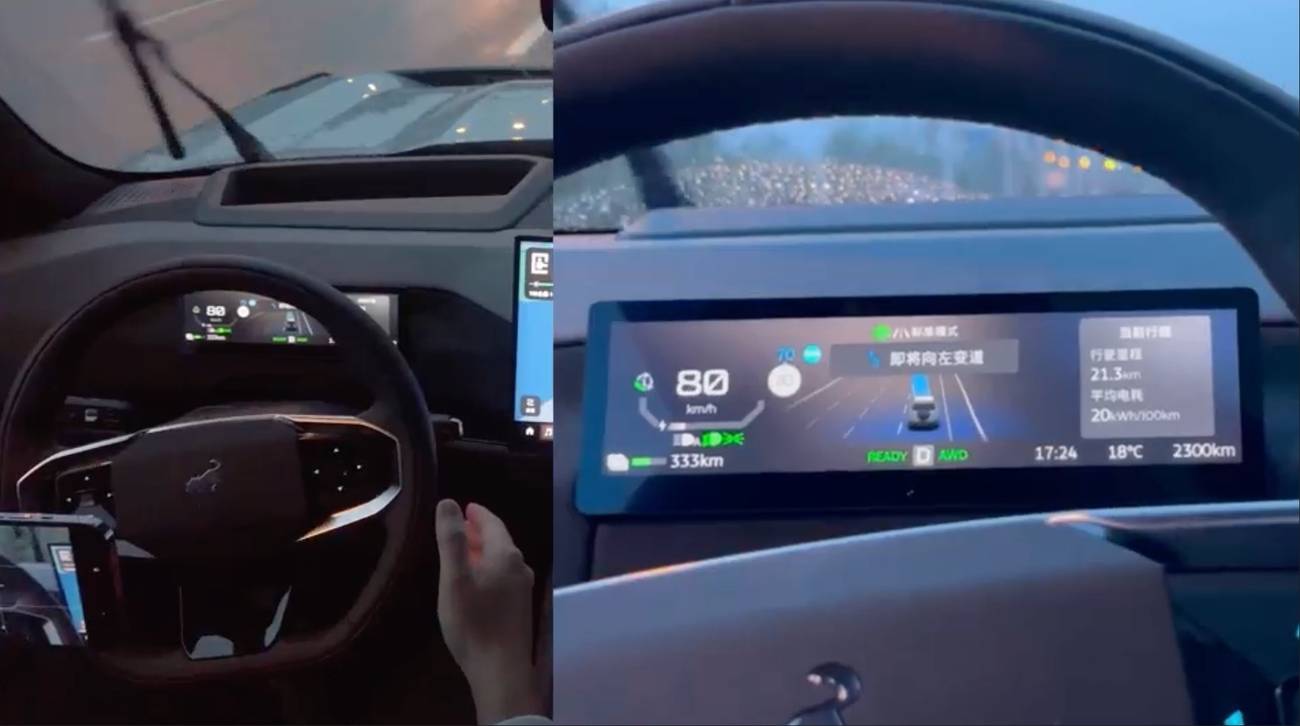在高速路段率先激活了車輛的高速NOA功能。在實(shí)際體驗中,車輛的車道居中保持表現(xiàn)令人印象深刻。即使在彎道上方向盤的修正也張弛有度,過彎整體十分細(xì)膩,并沒有出現(xiàn)其他車型上常見的"畫龍癥狀”。在遭遇側(cè)風(fēng)較強(qiáng)的路段時,系統(tǒng)的表現(xiàn)更是優(yōu)異。在經(jīng)過高速公路大橋路段時,前面上的橫風(fēng)并未影響車輛的行駛軌跡,系統(tǒng)通過細(xì)微的方向調(diào)整,始終保持穩(wěn)定的行車路線。這個細(xì)節(jié)讓測試團(tuán)隊對系統(tǒng)的控制精度給予了高度評價。