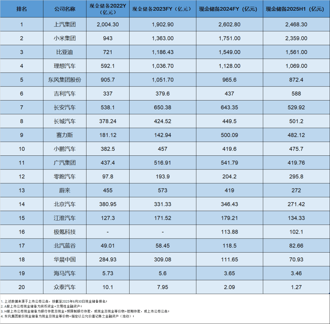 這種戰略升維,直接關系著一家車企的未來命運。我關注到一個值得玩味的數據:今年前三季度,主流車企的貨幣資金儲備普遍顯著增加。這正應了那句古話:“廣積糧,高筑墻,緩稱王。”它們此刻在營銷上的“靜”,正是在為全球化遠征的“動”積蓄最關鍵的資本。充足的現金流,無疑是穿越這場全球性競爭風暴的生命線。