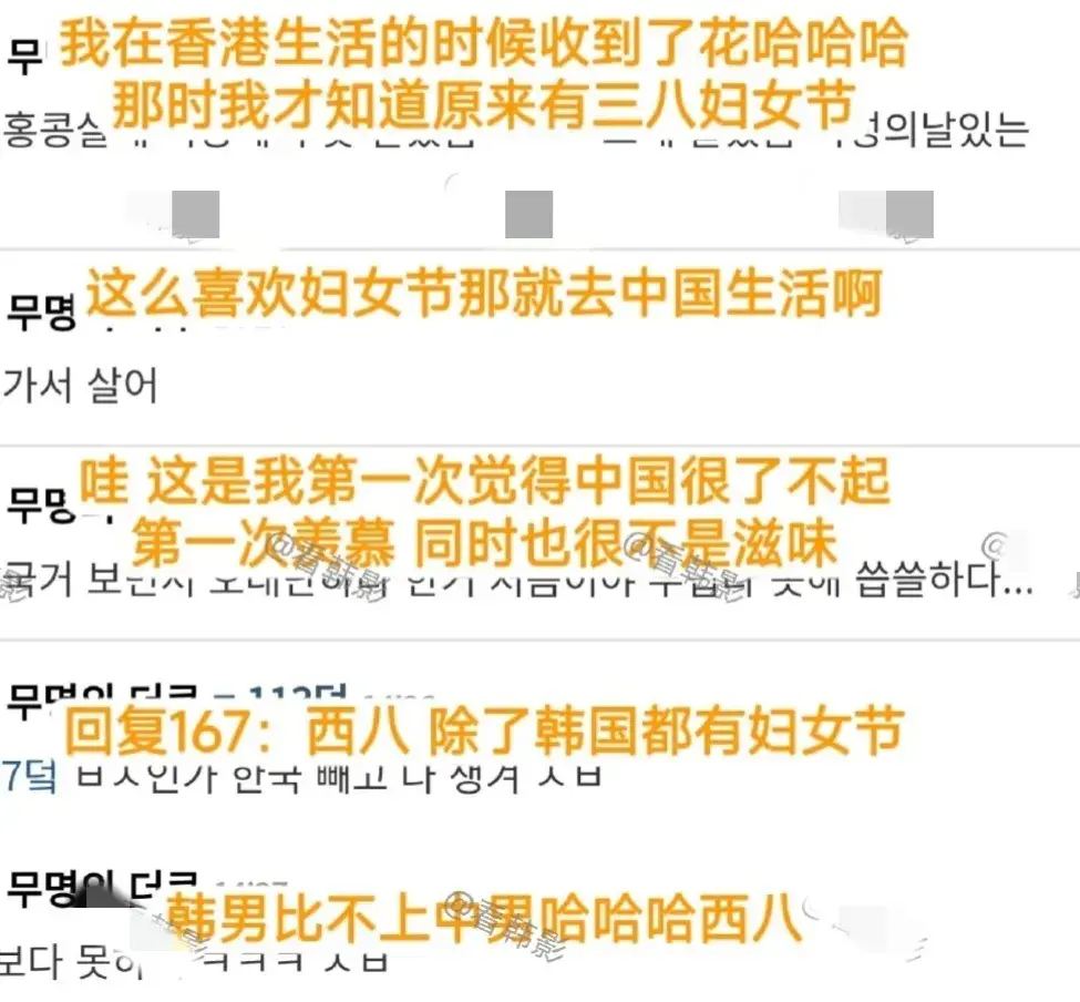 而對(duì)于中國女性同胞,能在3月8日這一天過上屬于自己的節(jié)日,這屬實(shí)令韓國網(wǎng)友很是羨慕。