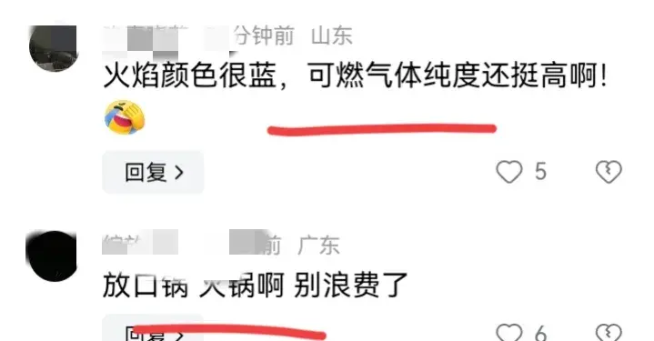 還有網友稱:這火焰挺藍的啊,可見真的純度很高啊,我們大家不能浪費這頭騾子做的貢獻啊,可以把這氣利用好,用來做火鍋也是一個不錯的選擇啊,大家都不要去浪費。