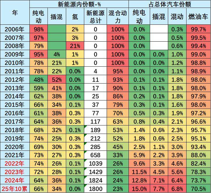 中國在世界插電混動份額表現(xiàn)持續(xù)走強。2021年中國在世界插電混動份額在33%的水平,2025年1-10月中國在世界插電混動份額達(dá)到75.7%的超高水平,中國在世界插電混動市場呈現(xiàn)超強的表現(xiàn)。