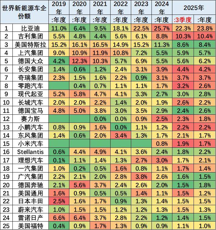 吉利集團的份額從2019年的4%上升到2025年10.4%。上汽的純電動份額近期較強,廣汽集團和長安純電動相對平穩(wěn)。