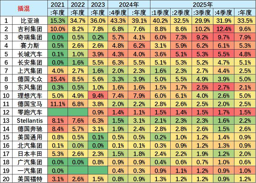 歐洲的插電混動份額從2021年的55%,下降到2025年的16.5%的水平。