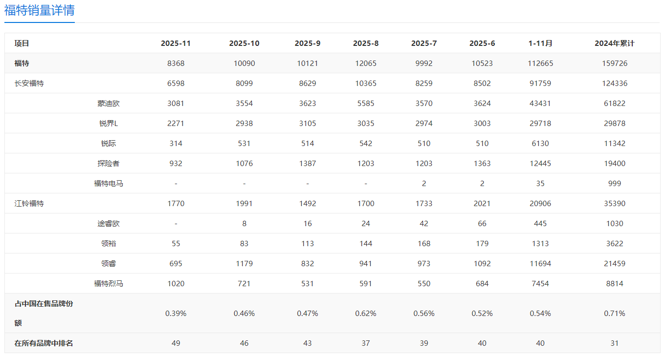 并且江鈴福特目前也沒有暢銷車,只有福特烈馬越野車在細(xì)分市場里還不算低。究其原因是江鈴福特打造的SUV車型并非福特全球車型,屬于本土化的產(chǎn)品,這樣的汽車產(chǎn)品相較于蒙迪歐、銳界、探險(xiǎn)者等全球車型而言,客觀上也難以被太多人認(rèn)可。