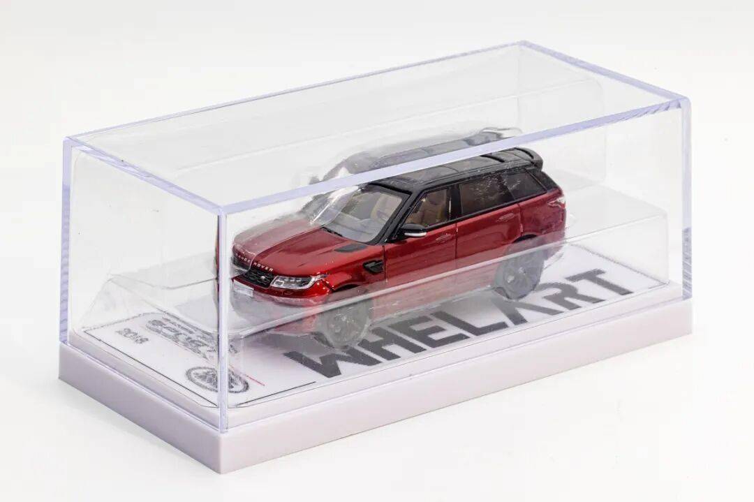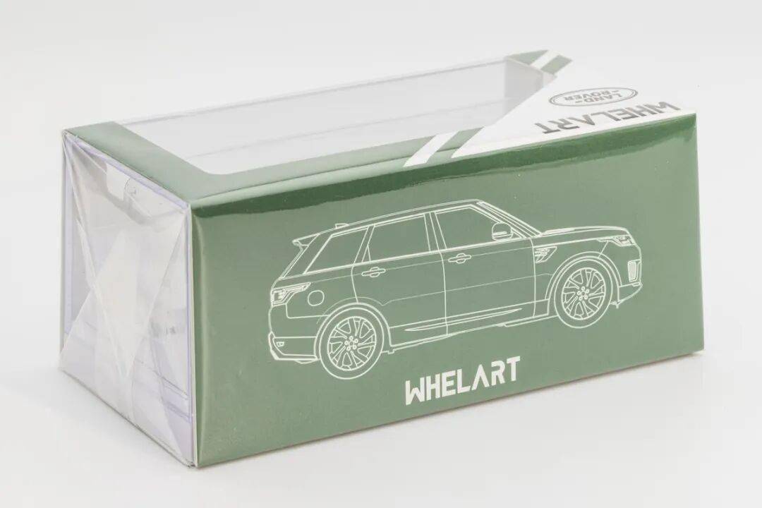 模型的包裝比較普通,綠白色的開口紙套,紙盒背面似乎車型的線圖。包裝內部是透明亞克力罩和白色的塑料底座,底座下面還有一個塑料罩子,還要上4顆螺絲,據了解品牌后期會增加一些功能,采用統一規格的底座。值得一提的是這款路虎攬勝運動版有真車廠家的授權。