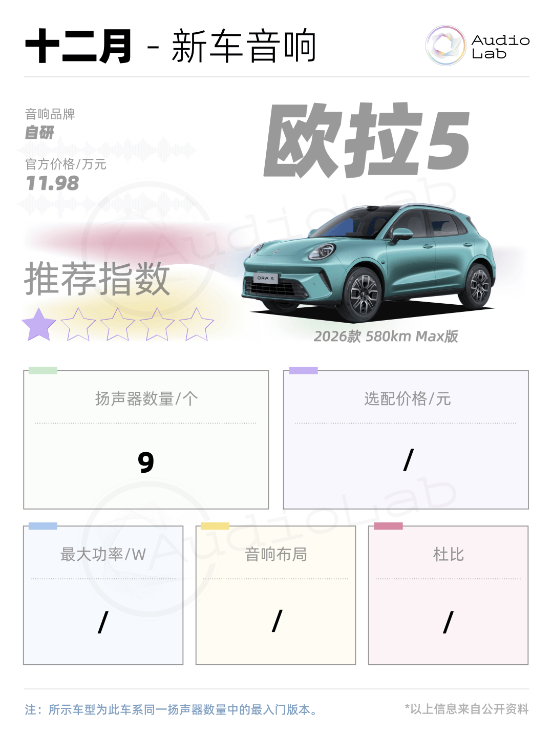 在歐拉閃電貓車型上,部分版本配備的是11個美國Infinity品牌音響。但作為歐拉品牌的新款車型,歐拉5搭載的是品牌自研音響。