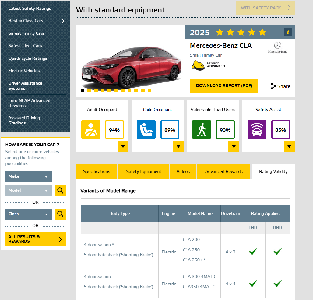 全新奔馳純電CLA擁有行業(yè)領(lǐng)先的電安全標(biāo)準(zhǔn),并通過多項權(quán)威機構(gòu)測試認證。包括中國電動汽車火災(zāi)安全指數(shù)測評(整車電池穿刺測試)五星認證、NESTA整車電安全專項驗證測試、中汽中心“EMTA人體健康防護之星”認證等。