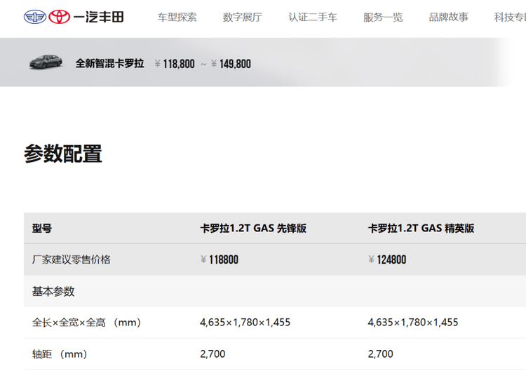 而從一汽豐田官網(wǎng)就能看到,新卡羅拉推出1.2T動力兩款車型,售價分別為11.88萬元和12.48萬元。但是1.2T車型車身長度為4635mm,軸距為2700mm,與現(xiàn)款車型一致。但是“汽扯扒談”從官方了解到,1.2T車型外觀設計也會向新家族前臉靠攏,具體還是以實車為準。