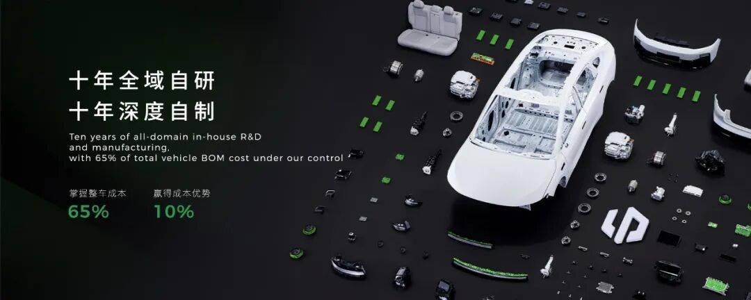 正因?yàn)榱闩芷嚫哌_(dá)65%的自研自制零部件比例,這樣在沖刺100萬輛的階段更容易通過平臺化與供應(yīng)鏈議價(jià)把“規(guī)模優(yōu)勢”轉(zhuǎn)化為“毛利/價(jià)格競爭力”,并支撐長期400萬的成本曲線。
