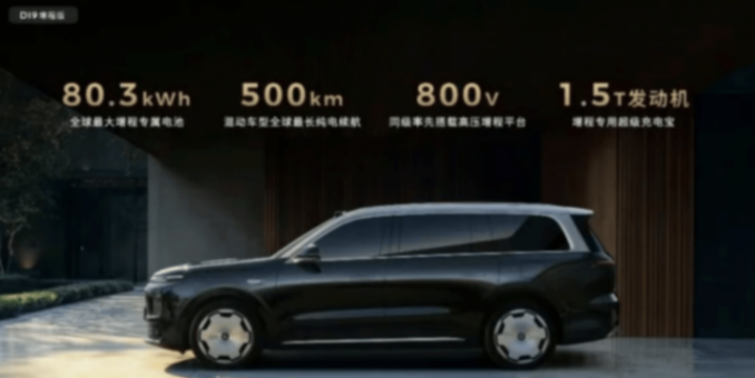 其中增程版基于800V高壓平臺打造,搭載1.5T增程器,其三電機版本的系統綜合功率可達400千瓦,百公里加速進入4秒級區間;電池方面匹配容量為80.3千瓦時的寧德時代電池組,CLTC純電續航可達500公里。