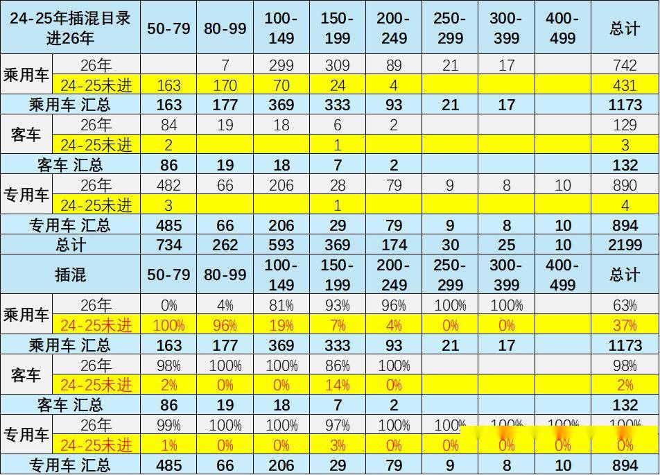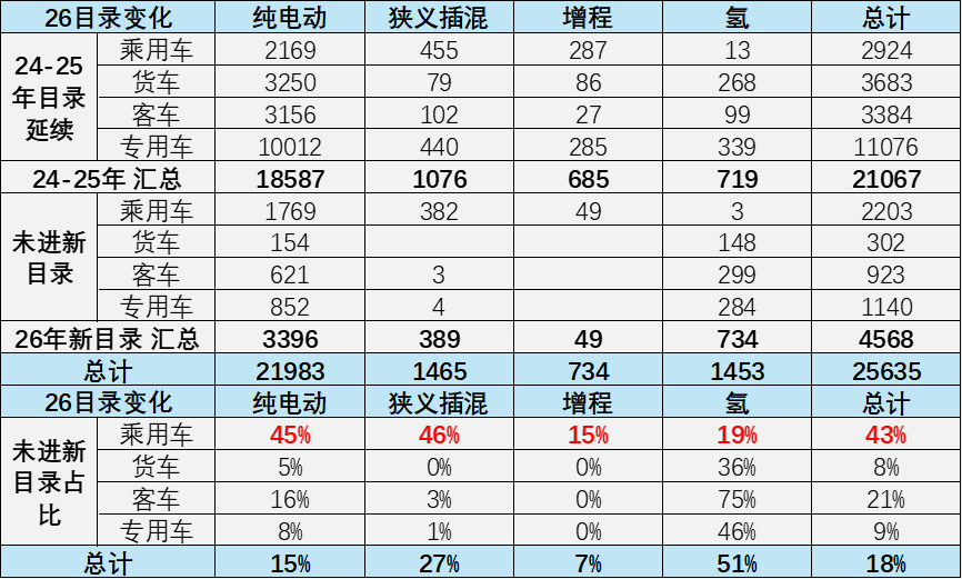 24-25年插混汽車免車購稅車型目錄進入26年的表現差異化,乘用車沒進入的較多,有利于乘用車更多的推出新車型,實現更高質量的發展。