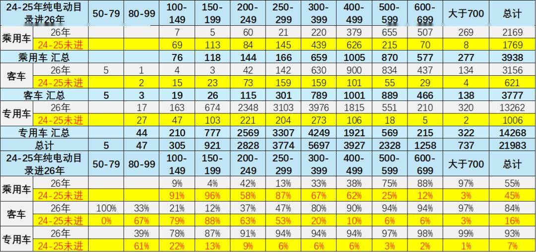 24-25年純電動汽車免車購稅車型目錄進入26年的表現差異化,乘用車沒進入的較多,有利于乘用車更多的推出新車型,實現更高質量的發展。