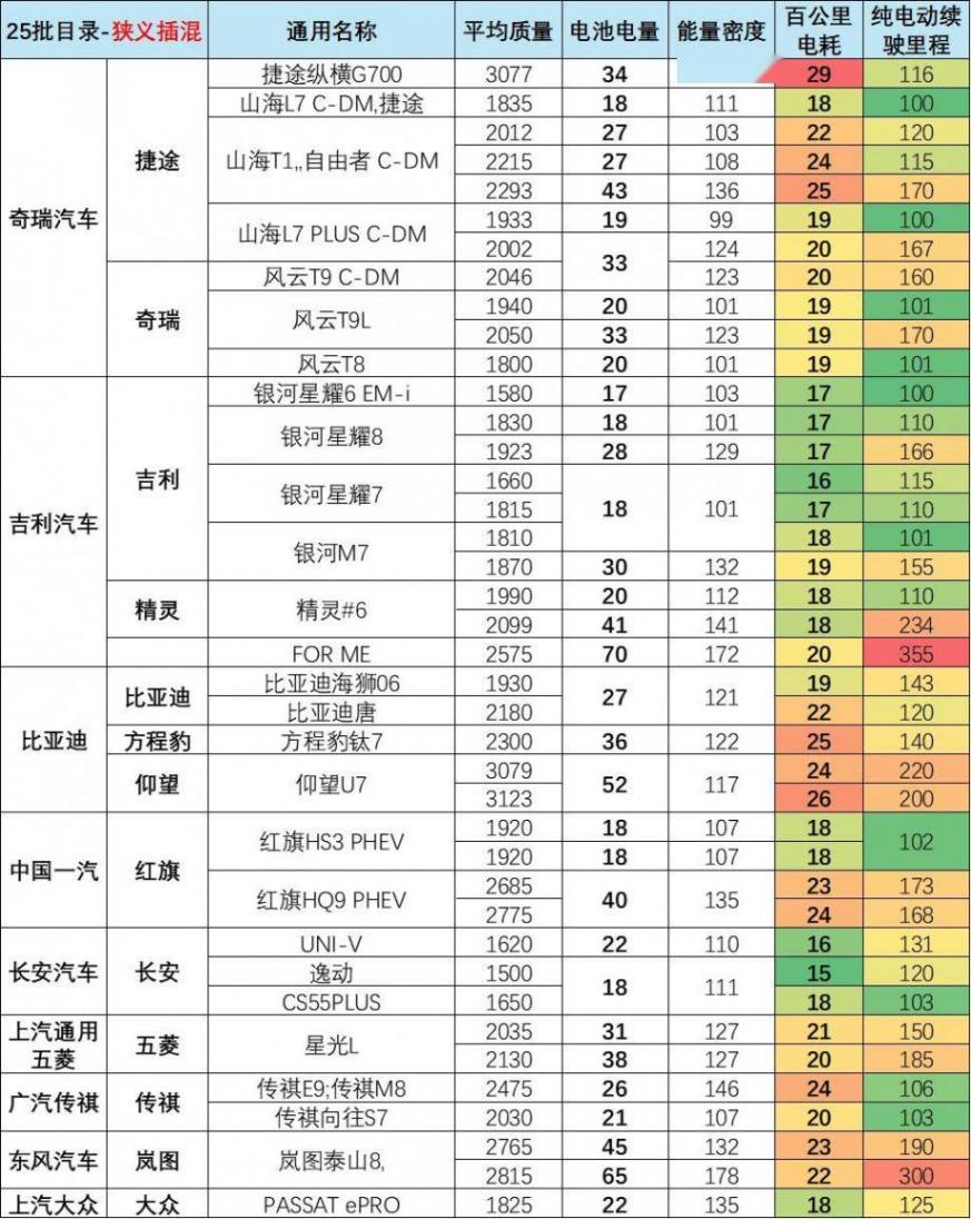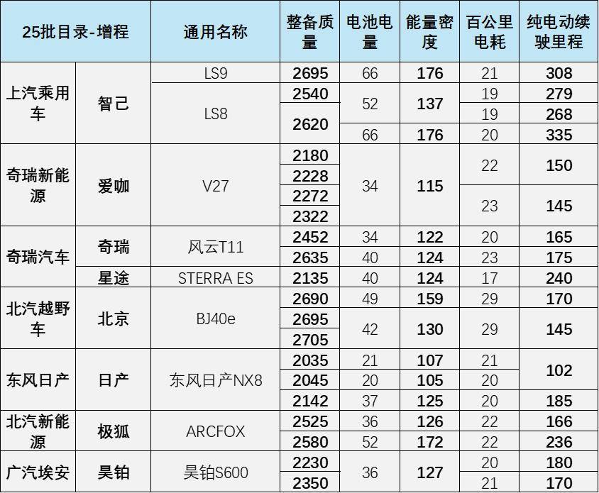 4、第25批增程式乘用車的增程式乘用車:油電平衡優化,能效表現突出