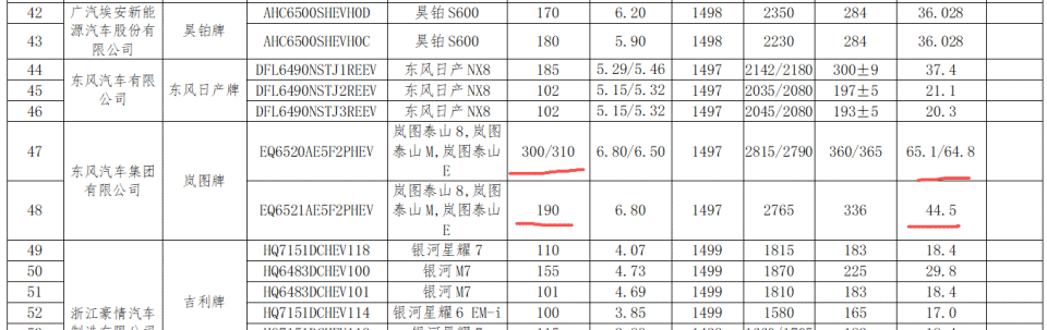 泰山8車長:5200 寬:2025 高:1814,軸距3090,泰山8申報了兩個版本但是有三種續航,區別應該是磷酸鐵鋰和三元鋰的區別,電池容量兩個版本是65度,還有一個40多度,看來40多度的價格會便宜點。