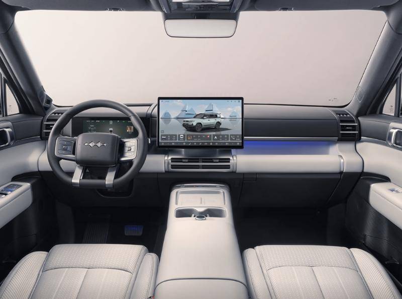 外形方面,方程豹鈦7采用了時下市場最受歡迎的“方盒子”造型以同時滿足越野與都市SUV消費群體的喜歡,從而無形中擴大了市場覆蓋面。內飾部分,鈦7也通過簡約的設計風格以構建硬派、科技的駕駛氛圍。