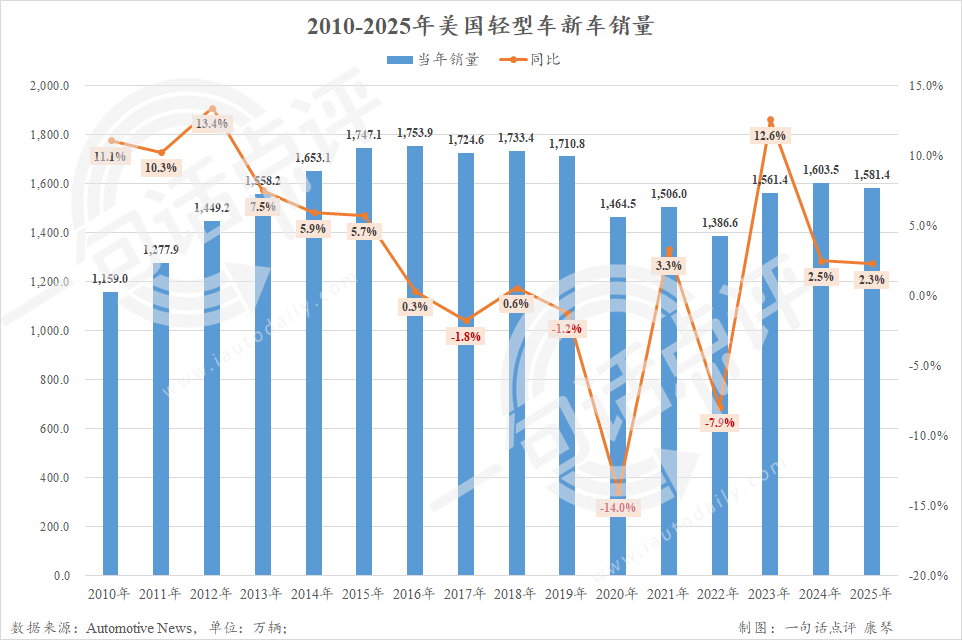 值得注意的是,目前捷豹路虎和奔馳等部分車企暫未公布成績,參考2024年這兩家主銷車企的銷量之和為49.4萬輛,實(shí)際上2025年美國輕型車新車總銷量應(yīng)該達(dá)到1630萬輛左右。