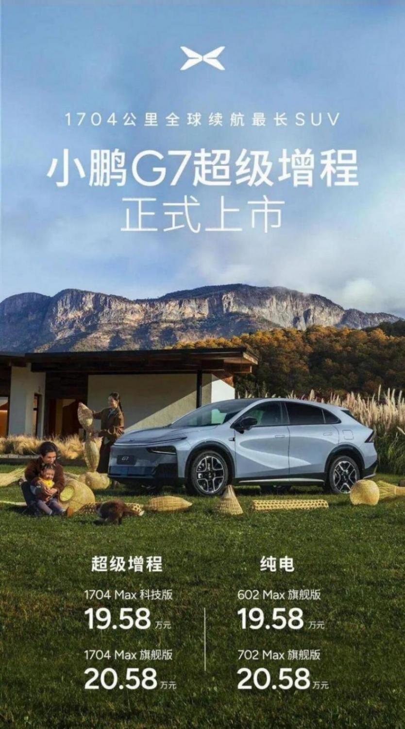 3、新款小鵬G7增程版上市,售價19.58-20.58萬元