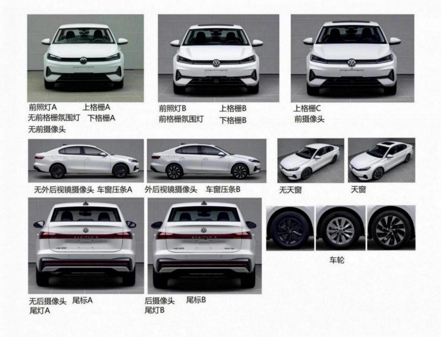 具體配置部分,現在可以看到前格柵貫穿式燈帶、360影像、天窗等,這些配置在低配車型應該都沒有。輪轂提供經典的速騰多幅輪轂以及一款熏黑輪轂。1.5T車型車尾有300TSI字樣,1.5L車型則無相關動力字樣。參考朗逸Pro,1.5L后懸為扭力梁,1.5T為多擺臂式獨立懸架,速騰S可能會采取同樣的策略。