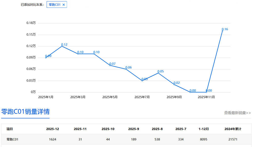 無(wú)論是顏值、車(chē)內(nèi)空間還是價(jià)格以及配置等方面,都有著可圈可點(diǎn)的優(yōu)勢(shì)存在,整體實(shí)力不錯(cuò)的零跑C01,2025年全年的市場(chǎng)表現(xiàn)如何呢?