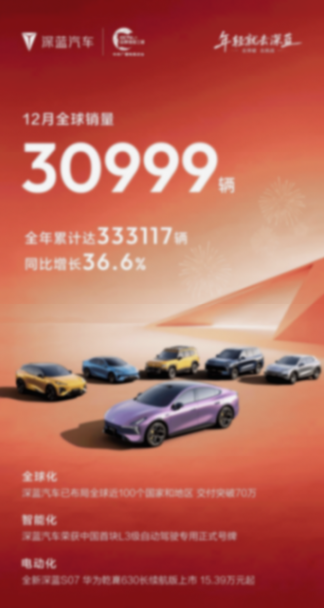 深藍(lán)汽車12月銷量為30999輛。事實(shí)上,深藍(lán)在2025年對(duì)產(chǎn)品線進(jìn)行了新的梳理,也增加了不少新車型,然而,月度銷售總量在突破3萬輛之后,很難再上一個(gè)新臺(tái)階了。
