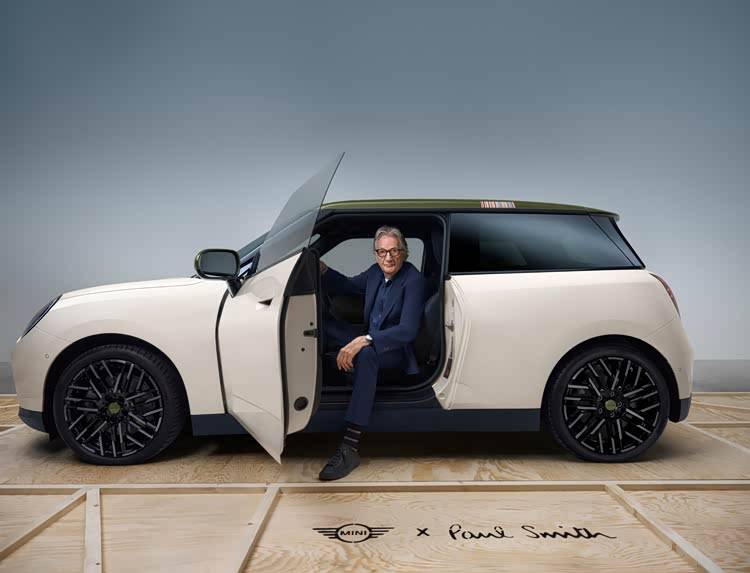 與英倫設(shè)計(jì)大師Paul Smith的合作始于1998年,從經(jīng)典藍(lán)色限定款到可持續(xù)概念車(chē),每一次聯(lián)名都詮釋著英倫設(shè)計(jì)的創(chuàng)新表達(dá)。Paul Smith以設(shè)計(jì)高定時(shí)裝的思路,深度參與了從車(chē)漆定義、內(nèi)飾材質(zhì)到每一處細(xì)節(jié)設(shè)計(jì)的全過(guò)程。他親自調(diào)配了三款車(chē)漆:靈感源于經(jīng)典的“羊皮紙白”與“拂曉灰”,以及致敬其家鄉(xiāng)的“諾丁漢綠”。這種綠色被巧妙運(yùn)用在車(chē)頂、輪轂蓋等處,成為設(shè)計(jì)師的獨(dú)特印記。