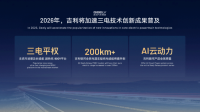 與此同時,淦家閱還表示2026年吉利將進一步加速三電技術創新成果普及。