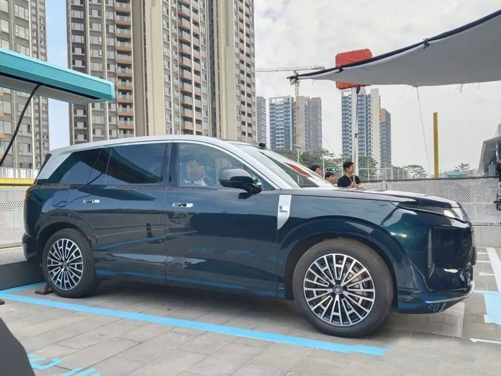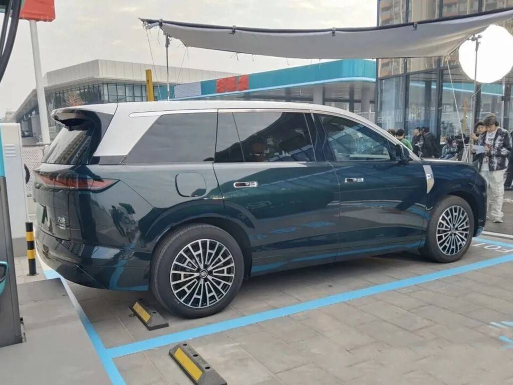 來到側(cè)面,這款大唐的側(cè)面造型和比亞迪高端品牌的N9/N8L很是相似,主打的也是一個方正大氣敦實,無愧于旗艦級SUV的定位。與此同時,車頂也采用了雙色車身,配合上隱藏式的門把手和大尺寸的輪圈,整個氣場和體量感我覺得是一點兒也不輸自家的。