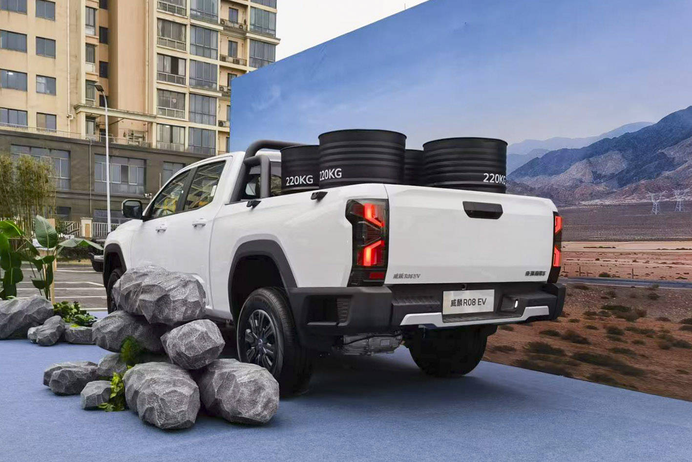 外觀方面,威麟R08 EV延續了麒麟力量美學設計,前臉搭載了形如鱗甲的大尺寸進氣格柵以及分體式“麒麟瞳”LED大燈,沒有跟風行業慣用的封閉式前臉設計,保持了家族的辨識度。另外,相比燃油車型,威麟R08 EV前臉的RELY的英文標識進行了藍色鍍鉻裝飾,顯示出了其作為新能源皮卡的獨特性。