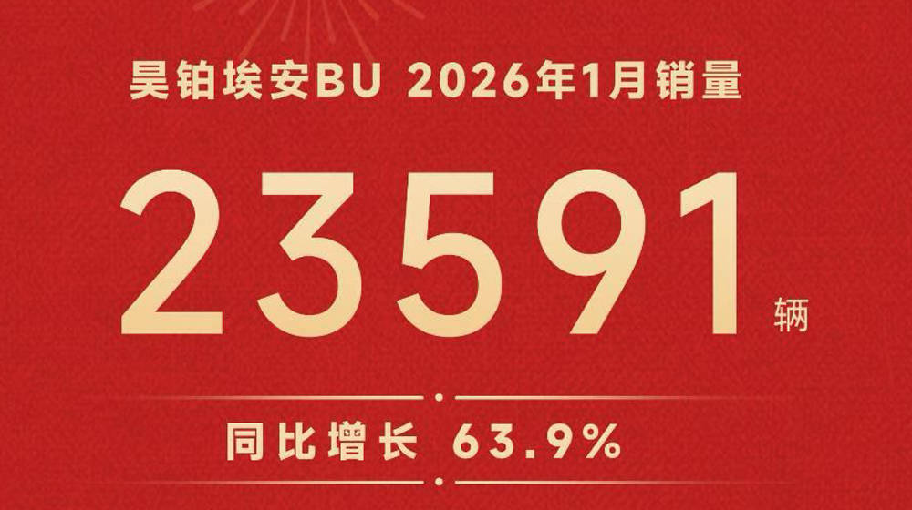 根據(jù)公開的銷量快報(bào)顯示,2026年1月份,廣汽集團(tuán)旗下的昊鉑埃安BU單月銷量為23591臺(tái),同比增長(zhǎng)63.9%。