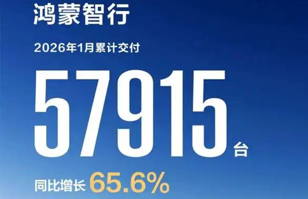 鴻蒙智行2026開年首月銷量為57915輛,同比增長(zhǎng)65.6%。相比去年12月銷量來(lái)看,環(huán)比下滑達(dá)到35%。
