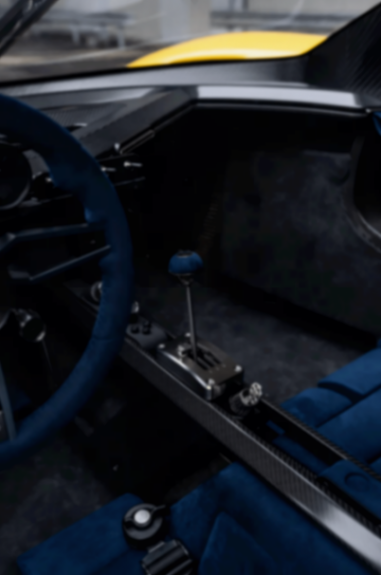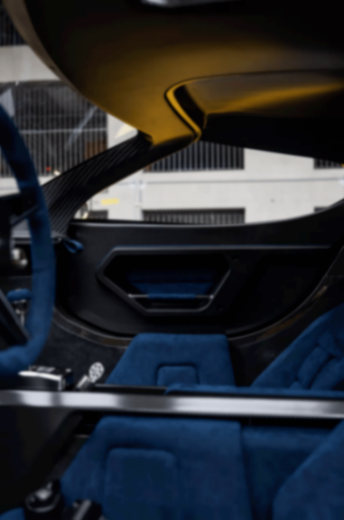 車內標配兩張現代化運動桶形座椅,藍色翻毛皮與裸露的碳纖維飾板相得益彰,整體內飾質感渾然一體。