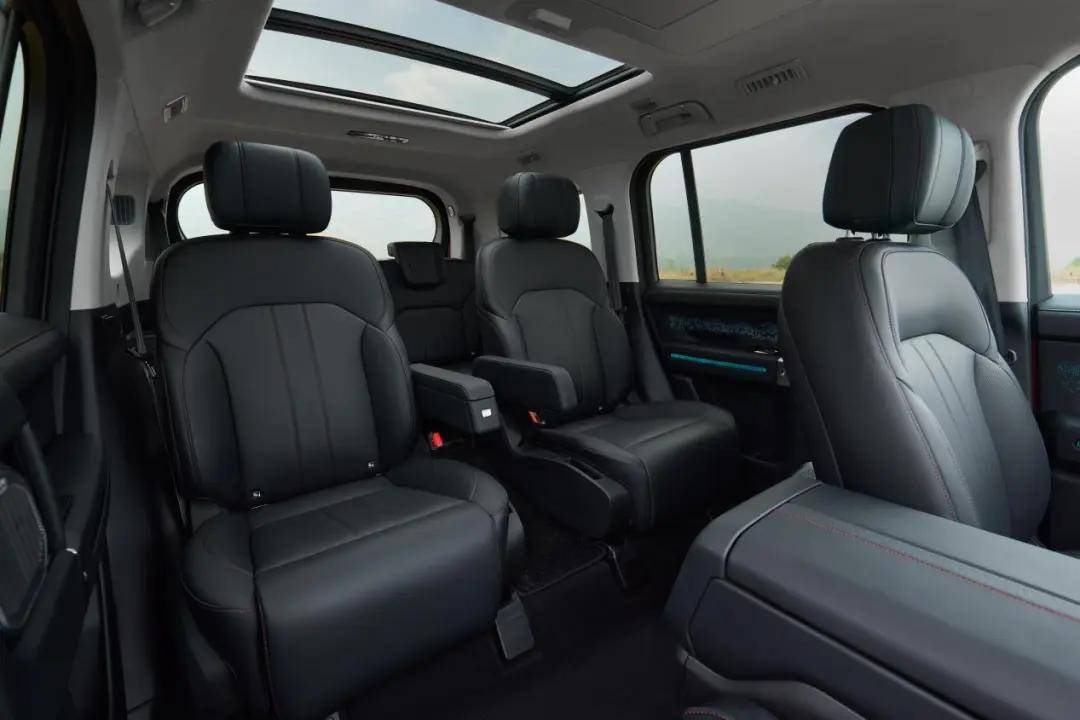 而且,縱橫G700在5座版本之外,還提供了2+2+2的6座座椅布局,其第二排配備獨立航空座椅,具備腰部調節、腿托調節,8點按摩/通風等配置,相較于坦克500 HI4-Z的第二排來說更顯尊貴。