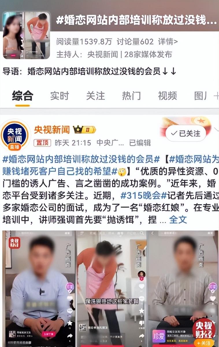 2024年3月15日晚間,央視“3·15”晚會(huì)曝光了多家婚戀平臺(tái)利用焦慮收割消費(fèi)者的亂象,其中涉及的珍愛網(wǎng)引起了廣泛關(guān)注。