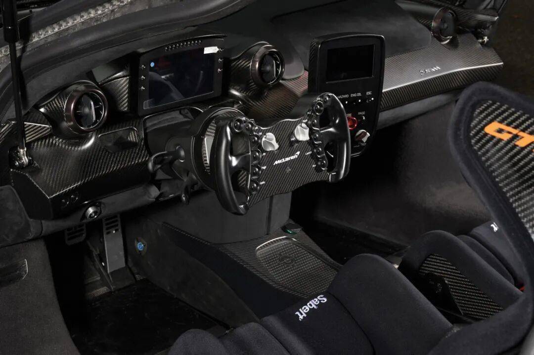 塞納GTR完全為賽道而生,內(nèi)飾舍棄了安全氣囊和信息娛樂系統(tǒng)等不必要的配置,僅保留了滅火器和機(jī)載攝像系統(tǒng)等賽道必備裝備。車內(nèi)配備F1風(fēng)格方向盤、固定式賽車座椅和六點(diǎn)式安全帶,儀表盤采用全數(shù)字化設(shè)計(jì),為車手提供全面的車輛數(shù)據(jù)信息。