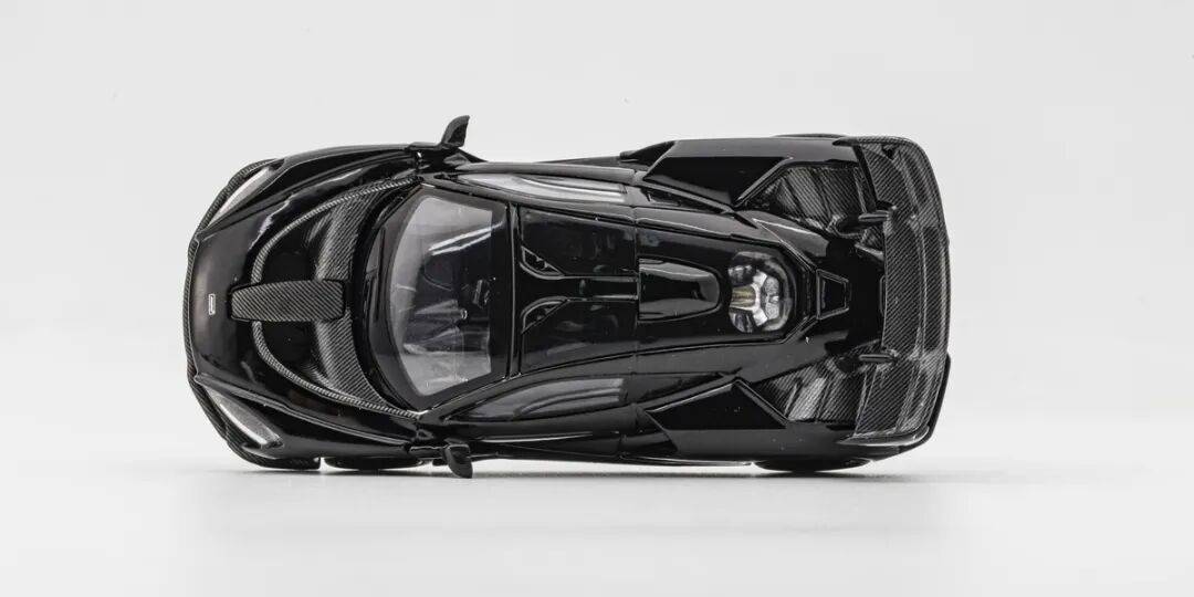 模型的整體漆面中規(guī)中矩,車頂用浮雕復(fù)刻了蝴蝶門的開門結(jié)構(gòu)。模型的發(fā)動機(jī)也有碳纖維貼紙細(xì)節(jié)。雨刮器是和擋風(fēng)玻璃一體成型,然后再畫成黑色的。發(fā)動機(jī)艙兩邊的導(dǎo)風(fēng)口。模型的車頂有類似F1的進(jìn)氣口,通過發(fā)動機(jī)艙上方的透明窗能夠看到一些發(fā)動機(jī)細(xì)節(jié)。